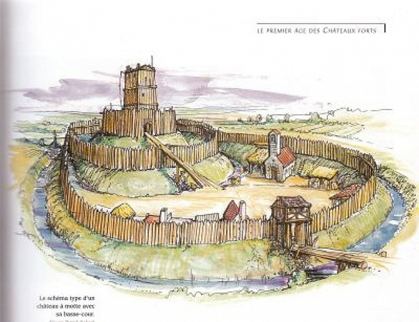 Face à l'affaiblissement du pouvoir royal, les seigneurs exercent une forte autorité sur leurs paysans. Pour marquer le paysage et remplir leur devoir de protection, les premiers châteaux-forts sont bâtis en bois avec une tour principale sur une butte naturelle ou artificielle appelée motte. Ces constructions se développent entre les Xe et XIIe siècles.