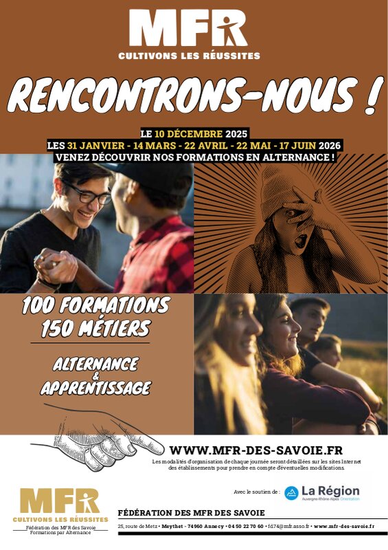 Demande d'informations Prenons contact ! PORTES OUVERTES 2025-2026Samedi 17 janvier 2026 (matinée)Mardi 03 février 2026 (soirée)Mercredi 1er avril 2026 (après-midi)Mardi 05 mai 2026 (soirée) PRÉ-INSCRIPTION Autres demande Liens utiles PLAN DU SITE Mentions légales & rgpd NOUS CONTACTER 55 Impasse du Brévent74930 Reignier-Esery04 50 43 87 65reignier@cneap.fr