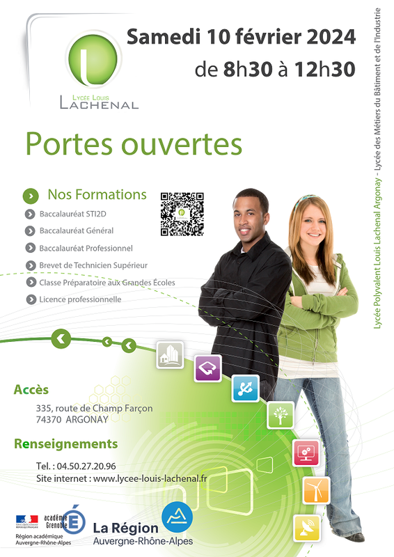 Nos portes ouvertes auront lieu le Vendredi 24 Janvier 2025 de 18h à 21h et le Samedi 25 Janvier de 09h à 12h. Puis le Vendredi 28 Mars 2025 de 18h à 21h et le Samedi 29 Mars de 09h00 à 12h00.